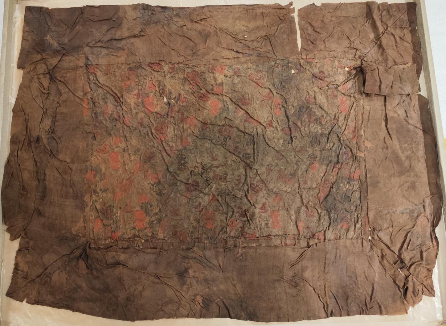 这一发现也纠正了最早专家们的发掘报告。喻燕姣说,当时的发掘报告编号将覆盖漆几的“几巾”和夹袍下的“枕巾”编反了,此次发现绮地“乘云绣”实为“茵席”,又进一步完善了发掘报告。